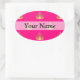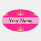 Pink and gold crown pattern oval sticker