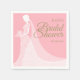 A chic bridal shower napkin featuring a bride wearing an elegant lace wedding gown on a blush pink background with beautiful script gold text and your special bridal shower details. You can customise the background colour to coordinate with your wedding theme.