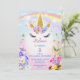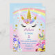 Pink and Gold Glitter Unicorn Rainbow Birthday Invitation