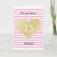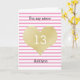 Pretty Pink and Gold any age birthday niece card. You can easily personalise the age and name. The inside niece birthday message can also be personalised if wanted. The back of this pretty birthday card also features the gold heart and pink stripes with a happy birthday message.