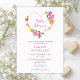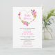This cute and whimsical baby shower invitation features watercolor hearts in pink and gold with flowers. The text combines handwritten script and serif fonts for a stylish and modern look. This is perfect for a spring or summer baby shower.
