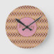 Pink and Gold Herringbone Personalized Round Clock