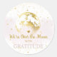 Pink and Gold Over the Moon Baby Shower Thank You Classic Round Sticker. Personalise the text to read whatever you like!