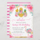 Pink and Gold Pineapples & Flamingo Kids Birthday Invitation