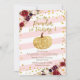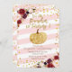 With pink white stripes, marsala murgundy molour, and gold confetti. Perfect for a fall girl birthday invitation.