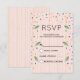 Pink and Gold Stripes Green Leaves & Confetti RSVP Card
