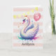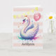A beautiful swan princess birthday card for her 5th birthday. You can personalise this birthday swan card with her name and age. Features pink, gold and a pretty swan princess with a pink balloon on the front. The inside card message can be also personalised if wanted. A beautiful birthday card keepsake for daughter, granddaughter, etc.