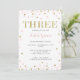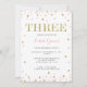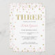 Faux Gold Glitter Pink and Gold Third Birthday Invitations