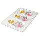 This cute bath mat features preppy pineapples of tropical pink flowers and gold on a background of polka dots.