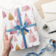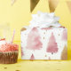 Wrapping paper featuring a whimsical pink and gold watercolor Christmas tree pattern, perfect for adding a touch of festive elegance to your holiday gifts.