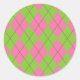Pink and Green Argyle Pattern with Black Lines Classic Round Sticker