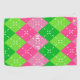 Personalised golf gear pink, green and white argyle. The argyle pattern has long been recognised as a classic design that has stood the test of time. The repeated diamond-shaped pattern evokes a sense of sophistication and elegance, adding a touch of refinement to golfing attire and accessories. The symmetry and precision of the pattern also align with the sometimes meticulous angles and shots of the sport of golf. Additionally, the combination of bold and contrasting colours within the argyle design creates visual interest and makes a statement on the green. Overall, the argyle pattern as timeless charm, aesthetic appeal, and ability to add a touch of style and personality to any golf gear. Colourful many shades of pink and green with white stitching argyle pickleball-themed gift for your pickleball-loving mum, dad, uncle, aunt, brother, sister, neighbour, grandpa, grandma, husband, wife, friend, or work colleague who won't stop talking about pickleball.