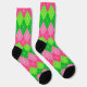Pink and Green Argyle with White Stitching Socks