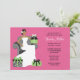 Invite the guests for a bridal shower in style with this modern and fun bridal shower invitation. This pink and green invitation features an African American bride sitting on a chair surrounded by gifts.