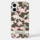 Customize this pink, green and cream camouflage iPhone 16 case with your your name in a trendy modern CAP font in dark green on cream. It's so modern, girly and trendy! Perfect for any country girl!