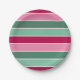 Pink and Green Christmas Stripes Paper Plate