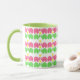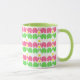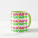 Fun and whimsical elephants in pink and green with yellow daisy design pattern mug.