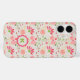 Personalise this CaseMate brand phone case printed with a sweet pink and green pattern of flowers, petals and leaves with contrasting accented area for your monogram. Ready for you to personalise in the easy Zazzle text editor. Fits a variety of iPhone models- choose yours in the drop down menu. See other matching items in this same pattern at www.zazzle.com/beebagsandcases