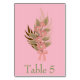 A lovely pink background, this design features a pink and green floral design. The green font features the table number.