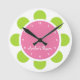 Pink and Green Flower Girl's Bedroom wall clock personalised with their name.