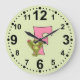 Pink and Green Frog with Polka Dots and Letter F L Large Clock