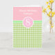 A pink and green personalised 8th birthday card for girls. This sweet pink and green gingham 8th birthday card can be personalised with her name on the front of the greeting card. The inside card message can be personalised as well if wanted. The back has a pink and green gingham design. Please see all photos. This cute personalised 8th birthday card would make a great keepsake for a daughter, goddaughter, niece, etc.