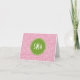 Pink and Green Greek Key Pattern Monogram Note Card