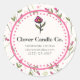 Business stickers with your custom business details inside an eggshell white coloured circle with a pink dotted border. Business name is written in a bold font. The backdrop is a pattern of hand drawn pink wildflowers with long green stems and leaves on an eggshell white coloured backdrop. Pink circles and sprigs also decorate the design. Whimsical and pretty floral design.