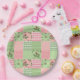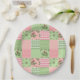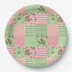 Pink and Green Patchwork Quilt Pattern Paper Plate