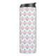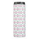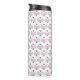 This tumbler features a pattern of pickleball paddles. Colours include pink and green.