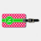This very preppy luggage tag features bright Summer Pink and white polka dots with a bright green and white monogram on the front and matching green and white on the back. Personalise with your choice of initial and contact information.