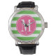 Trendy and stripes chevron pattern watch. Write your first name initial on the template to personalise. You can change the green stripes colour by clicking the Customise it button - Edit Menu - Background.