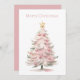 Pink and Green Watercolor Christmas Tree Holiday Card