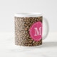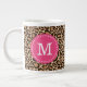 Pink and Leopard Print Custom Monogram Large Coffee Mug