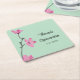 Add a special touch to your quinceañera (or any other event) with personalised coasters. These paper coasters are ready to be personalised with your custom message and date and feature a mint green background with an illustration of pink cherry blossom flowers on a branch.