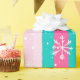 Pink and Mint Vertical Striped Snowflake Wrapping Paper