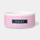 Custom designed dog food or water bowl with a chic girly modern chevron print pattern. Personalise it with your pet's name in a rectangle frame. Click Customise It to change text font and colours to create a unique one of a kind design!