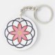 Pink and Navy Blue Flower Design Acrylic Key Ring