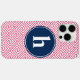 Pink and Navy Blue Greek Key Pattern Monogram Case-Mate iPhone Case