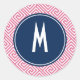 Pink and Navy Blue Greek Key Pattern Monogram Classic Round Sticker