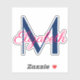 This preppy monogram sticker features your choice of initial in classic navy blue and name in girly pink.
