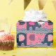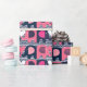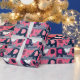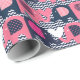 Elephants of navy and pink with pink and white hearts on a chevron striped background of navy blue and white, a cute, fun wrapping paper perfect for birthdays or other occasions!