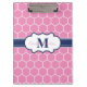Pink and Navy Monogram Geometric Pattern Clipboard