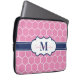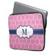 Pink and Navy Monogram Geometric Pattern Laptop Sleeve
