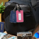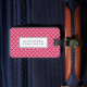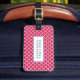 Featuring a bright, vibrant, preppy colour palette of navy blue and fuchsia pink, this patterned luggage tag features your name or monogram on the front with your full contact details on the back.