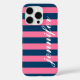 Pink and Navy Stripes Custom Script Monogram Name Case-Mate iPhone Case