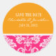 Pink and Orange Damask Wedding Sticker