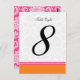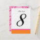 Chic and trendy, fully customisable and personalised pink and orange damask monogram table number. Let your style shine through these invitations. Matching save the date cards and magnets are available in this store.
