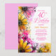 Invite your friends and loved ones to your 40th birthday with this vibrant pink and orange floral birthday party invitation. The customisable text area in this invitation template allows you to effortlessly include all the necessary details for your special birthday celebration, including the date, time, venue, and RSVP information. A variety of paper types and corner styles are available for your unique invitations, along with the option to download if you prefer a digital format.