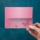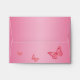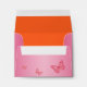 This pink and orange floral with butterflies linen A2 envelope matches the wedding invitation and RSVP card shown below and is designed to fit the reply card. Other paper choices are also available.